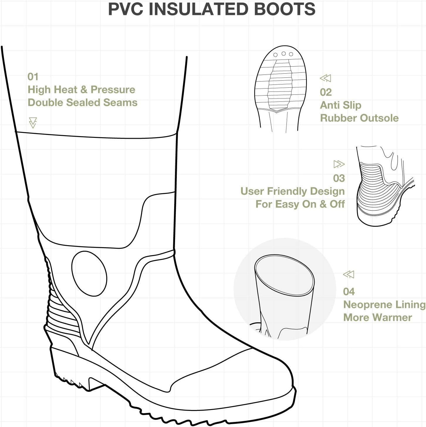 The HISEA Neoprene Chest Waders feature 200G Thinsulate insulated boots, ensuring your feet stay warm and dry during long days out in the field. The boots are designed with a durable rubber sole for excellent traction in various terrains, making them perfect for duck hunting and other outdoor activities.