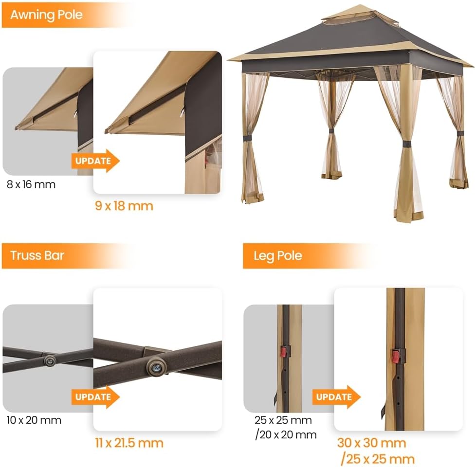 Constructed with high-quality materials, this durable canopy tent features a 2-tier roof design that provides extra ventilation and protection from the sun. The included mesh netting not only adds a touch of elegance but also helps keep pesky bugs at bay, allowing you to fully enjoy your outdoor space.